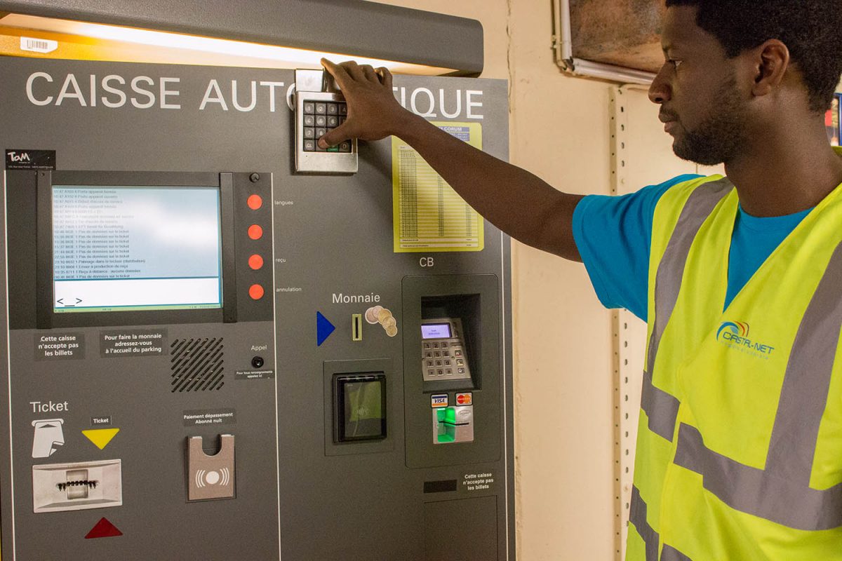 Gestion de l’accueil client, des paiements en liquide, gestion de l’identité olfactive, contrôle des plaques d’immatriculation des voitures.